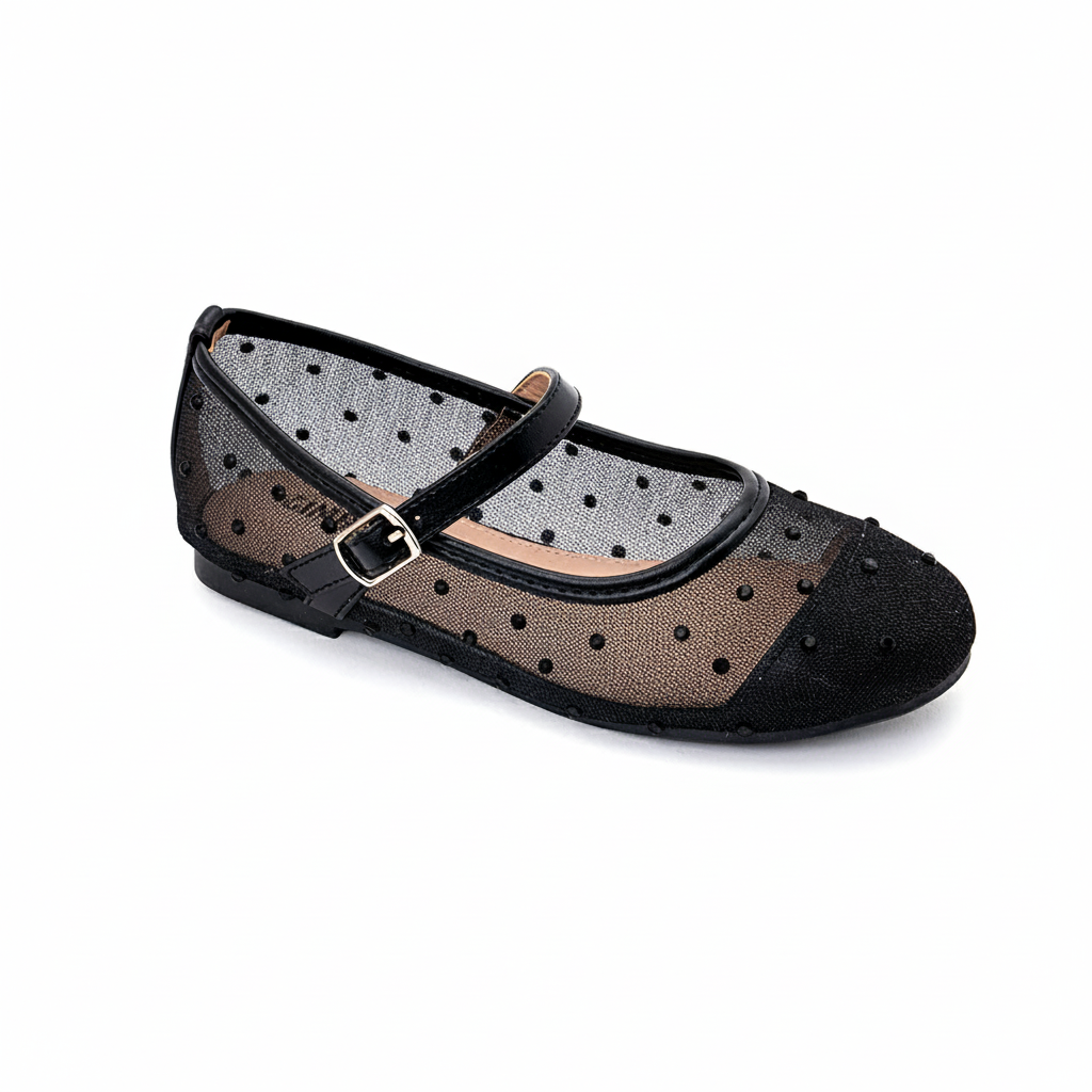 La malla con textura suave permite la ventilación del pie, mientras que los pequeños brillantes aportan un toque sofisticado sin perder la comodidad.